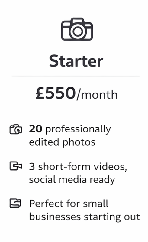 We provide professional photography and social media content creation in Weston-super-Mare and surrounding areas. Our monthly content packages include both photos and short-form videos that help businesses grow their online presence.